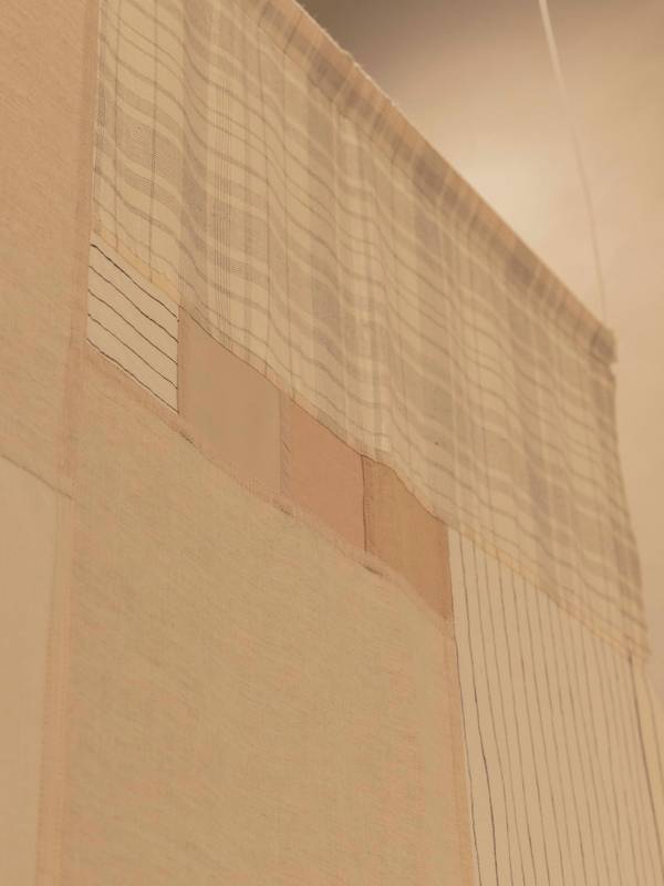 Often, I will begin with pencil sketches or watercolor painting, experimenting with scale, shape and subtle shifts in tone and colour. Intricacies of composition, seam placement and texture are then considered as a work and is pieced together. Each textile has a narrative and a curated balance; a fine stripe in a certain direction, a hint of color or unusual texture is introduced as it carries the eye around the work. New works don’t deviate too much from the old, however each is given its own personality, dictated by a constantly evolving collection of fabrics, whether it be cutting room surplus, gently worn garments or carefully sourced vintage finds.