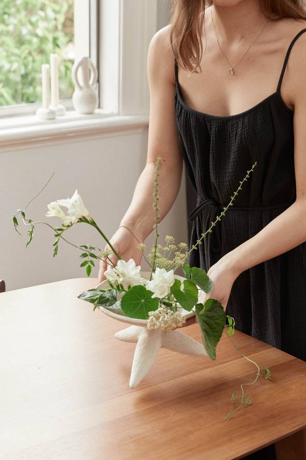 My style is minimal and relaxed. My clothes are constantly covered in clay dust at the studio, so an apron is my go-to studio work uniform. I often wear workwear pants, denim, oversized shirting and linen. Working such long days, I prioritise being comfortable.