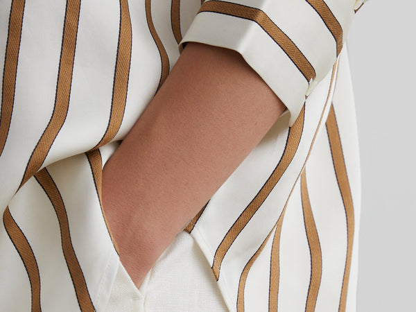 Fabrication sourced in Europe and milled in Italy. A structured and smooth premium finish, heavier than silk and a breathable summer option.