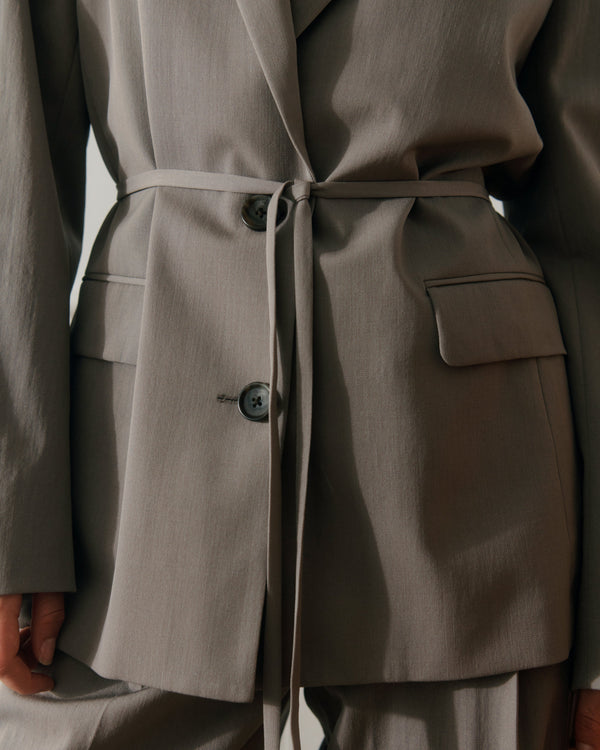 Single breasted wool blazer in a classic cut, with full lining and removable belt to change silhouette.
